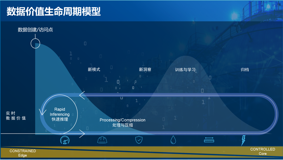 “数据的价值是随着所处阶段的不同而有起伏和波动的,但毫无疑问,在数据产生的边缘是数据有着最大价值的地方。” 刘斌强调,能源企业可以通过加快数据的产生、收集、处理、分析、存储、归档,以及深度学习、产生见解、确立新模型的过程来提高决策效率。要实现数据的端云协同,首先要制定清晰的商业计划,然后根据不同的数据源和不同的数据价值,确定数据和系统的优先级,第三要确定相应的数据收集方法和解决方案,第四要决定最合适这些数据类型的处理模型和宿主环境,第五步是整合分析数据提出洞见,进行决策,最后还要保证业务系统拥有有效的运营环境。