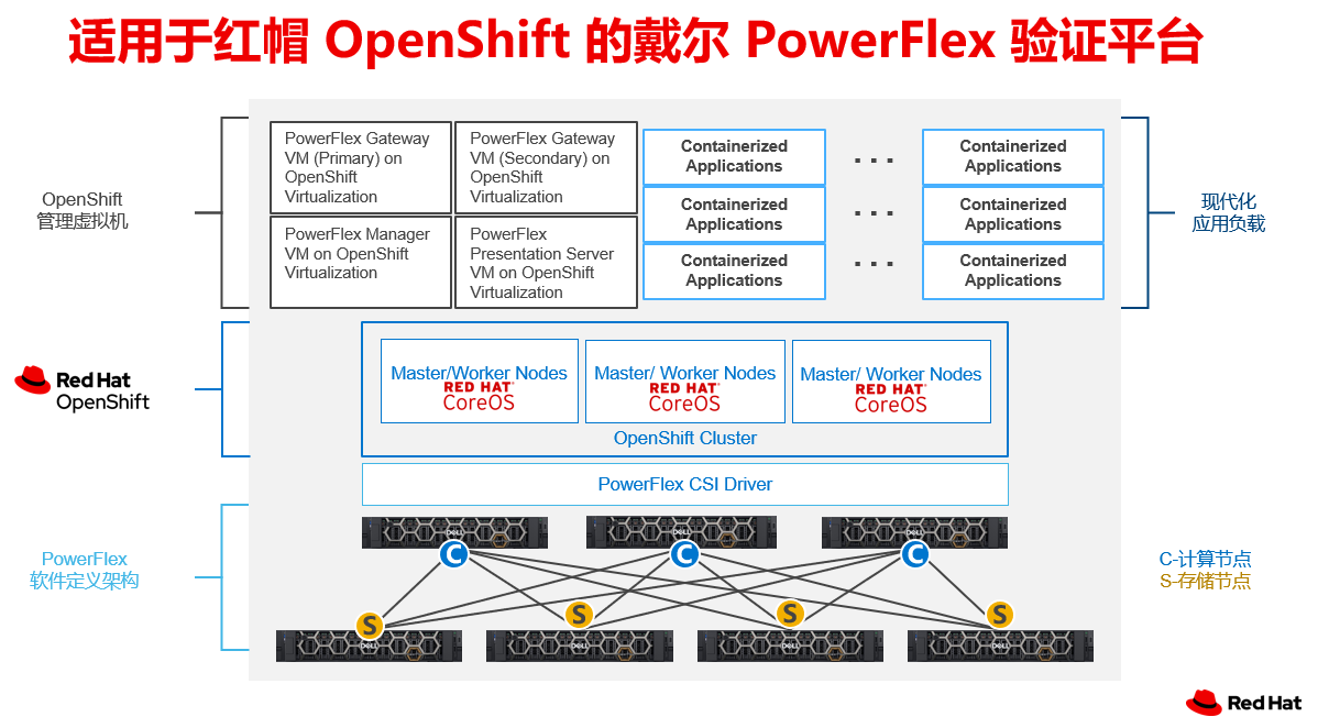 2022年9月,双方联合发布了适用于红帽OpenShift的戴尔PowerFlex软件定义基础设施平台,它经过双方验证的优化设计,有完整的记录部署和配置指南,还具有自动化、灵活性、高可用和可信赖的特点,可以为客户交付严格的应用负载SLAs,提高IT的敏捷性和DevOps的生产力,简化运维并提高效率。