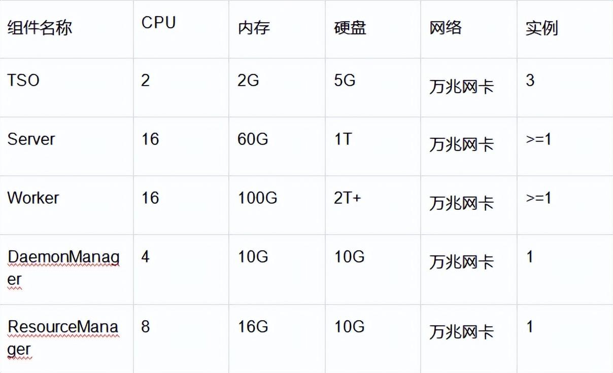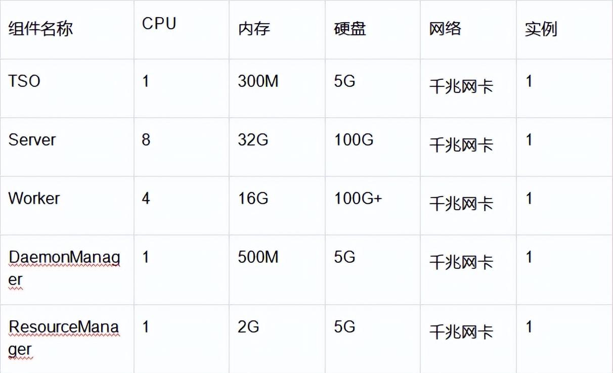 用户需要部署和购买自己的Kubernetes集群,且要求在不影响测试性能前提下的最低硬件配置如下表: