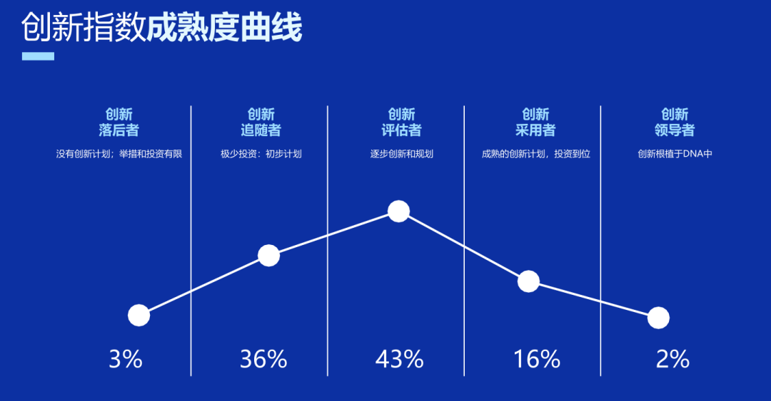 戴尔科技集团在其最新发布的创新指数(Innovation Index)调研报告中也肯定了这一点。该报告按照创新成熟度的基准将受访企业划分为五个类别:创新领导者、创新采用者、创新评估者、创新跟随者和创新滞后者,并指出:创新领导者和采用者拥有端到端的创新战略,能够很好地应对全球经济衰退、供应链挑战、环境影响等不利因素,并实现持续增长。