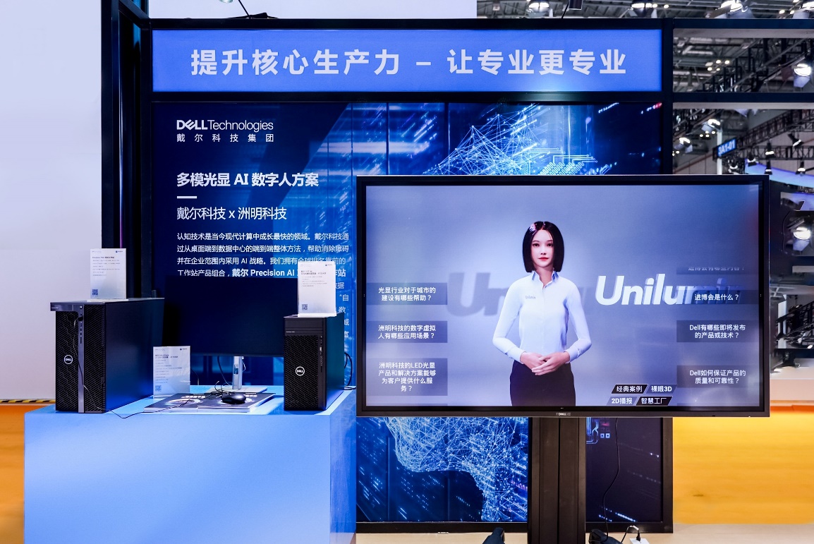 此外,戴尔还展出了与诸多合作伙伴在AI领域共同探索的成果,包括与当虹科技共同构建的超高清视频应用方案、与思看科技联手打造的全产业3D测量系统。洲明科技也借助戴尔Precision工作站,将极致的算力性能和稳定的运行体验完美融入多模光显AI数字人应用中,以完善的解决方案和交付能力赋能智慧城市、智慧展馆以及演绎文娱等领域。在3号馆人工智能体验区,戴尔的OEM合作伙伴深圳恒泰信科技还在现场展示了业界领先的高尔夫模拟器。
