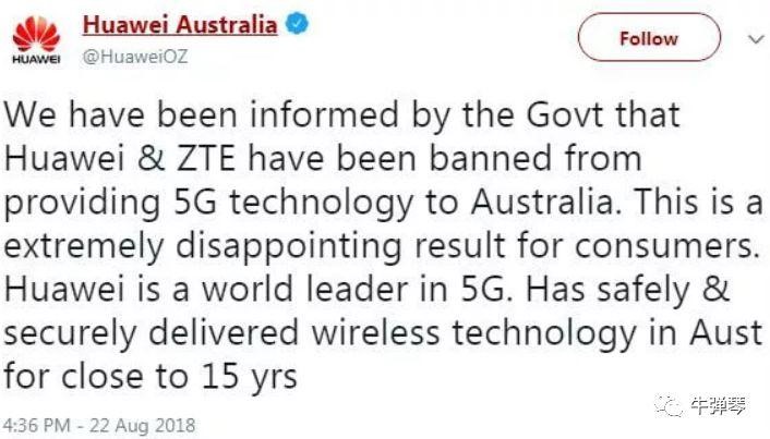 在推特上,华为澳大利亚公司的一份简短声明这样说: