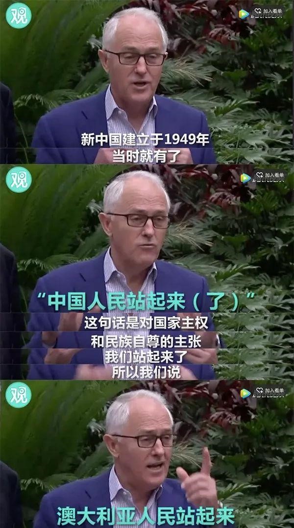 去年,他声称为了抵抗“有外国势力干预澳大利亚”,他必须给澳中关系划出红线。甚至,他还用中文喊出了:“澳大利亚人民站起来(了)!”