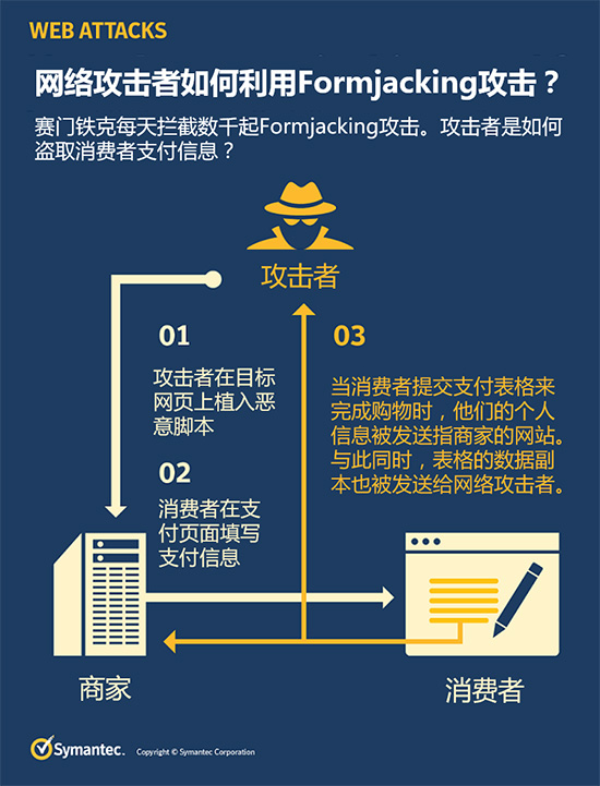 每年,从10月底开始,全球消费者都沉浸在购物的血拼中,无论是中国的“双十一”大促,还是欧美国家的黑色星期五(Black Friday)或者Boxing Day。毫无疑问,网购为全球消费者带来无尽的便利,但是赛门铁克的近期调研发现,网络攻击者已经将目标瞄准电子商务领域。近半年频频被曝光的个人信息盗取Formjacking攻击,已经对诸多大型企业发起攻击,例如英国航空公司、票务供应商Ticketmaster、软件厂商Feedify和美国电子产品零售商新蛋网等知名企业。