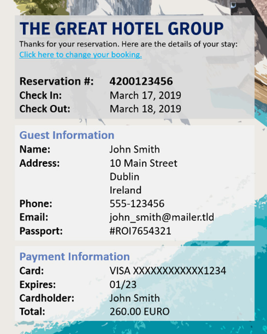 图 1.预订信息样本 - 显示可能会泄露的顾客预订数据类型