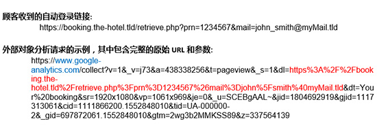 研究测试发现,顾客如果使用电子邮件中收到的链接直接自动登录到预定窗口,在此过程中加载的页面可能会调用许多远程资源,而这些外部对象发出的Web请求会直接将完整URL作为参数发送。在此次测试中,酒店预定码被30多个不同的服务供应商共享,包括一些知名社交网络、搜索引擎以及广告和分析服务供应商。在这种情况下,第三方服务可以登录预订窗口,查看详细的个人信息,甚至取消顾客的预订。值得强调的是,出现这种问题并非服务供应商的责任。