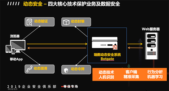 瑞数信息首席技术官马蔚彦强调:“越是创新的东西,就越需要实践和市场的检验。安全是一门实战性极强的学科,只有技术真正落地,创新才能算成功。”瑞数信息相信,对于等保2.0的解读不应只是为了满足法律法规的要求,如何运用创新的“动态安全”技术,将法律法规中的“主动防御”愿景落实到日常运营过程中,才是安全厂商应当始终思考和肩负的责任。