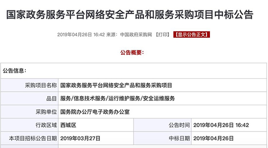 瑞数信息成功中标 国务院国家政务服务平台采购项目!