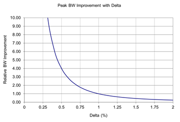 图4 多模光纤的带宽随纤芯相对折射率的变化曲线