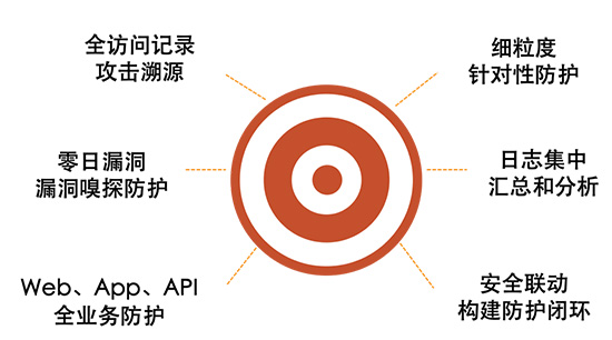 现在业务系统都是全渠道访问,攻击者对系统应用的攻击已经不满足于单单Web层面了,对于暴露面的防护应扩展到APP、API等。因此需要构建全应用安全防护体系,包括Web、APP、API,以实现安全前置、动态对抗。