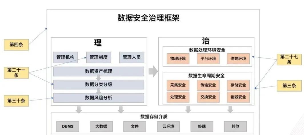 1. “理”:强调建立数据安全管理机构、落实数据安全管理人员以及制定数据安全规章制度等管理性措施。
