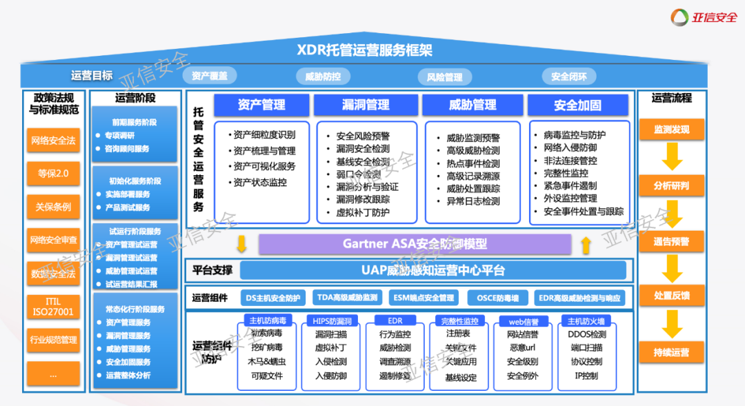 亚信安全从多年前就开始探索安全运营技术和服务模式,并基于不同行业的服务经验,形成更加个性化、场景化的解决方案,通过标准化、常态化一站式安全运营保障服务,为用户提供了安全能力的全域打通,真正实现了安全运营的成功“减负”。