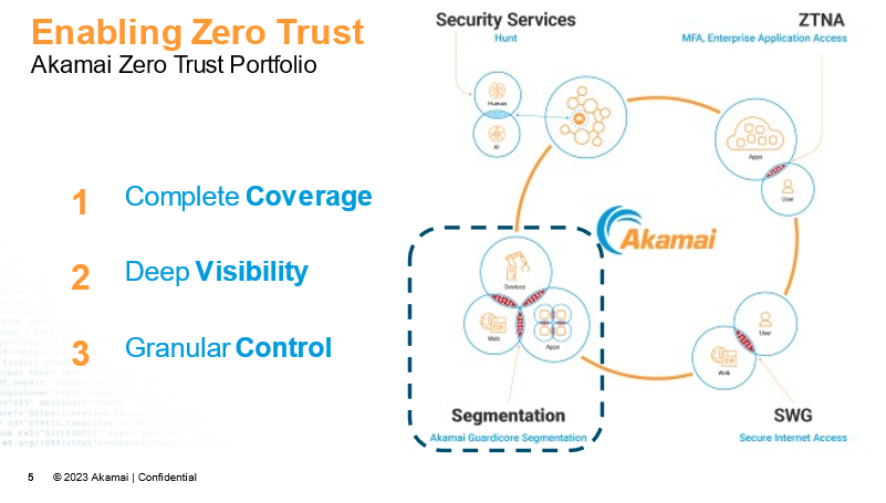 要解决这样的问题,Akamai推荐使用“无代理”方法,即便是非常老旧的系统,在无代理的背景之下,依然可以用非常现代的保护方式去保护它们。保护这些系统最优的方式之一,就是选用并且赋能零信任Zero Trust模型。在Zero Trust当中,任何一类用户或者应用不会自动受到信任,只有得到授权的用户和应用才能够实现良好的沟通。这样可以保证即便是授权的一些用户和应用,也要持续地监测,防止任何可疑的行为。