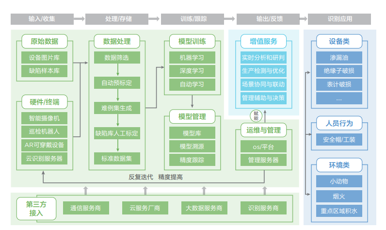 以能源巡检这一核心场景为例,联想针对电力行业变电、输电、配电发布了三套智能化巡视巡检解决方案,着力解决人力不足,巡检设备安全性与巡检结果不稳定等核心问题。在变电站巡检场景下,联想依托物联网、计算机视觉和云原生技术,结合在线传感器、高清摄像机、红外摄像机、巡检机器人和无人机等感知手段,开发在线智能巡视系统,提升设备状态感知能力、主动预测预警能力、辅助决策能力和现场管控能力,保障电网设备安全运行,提高运检工作效率效益,减少人身伤害风险,全面提升变电站运维智能化水平。