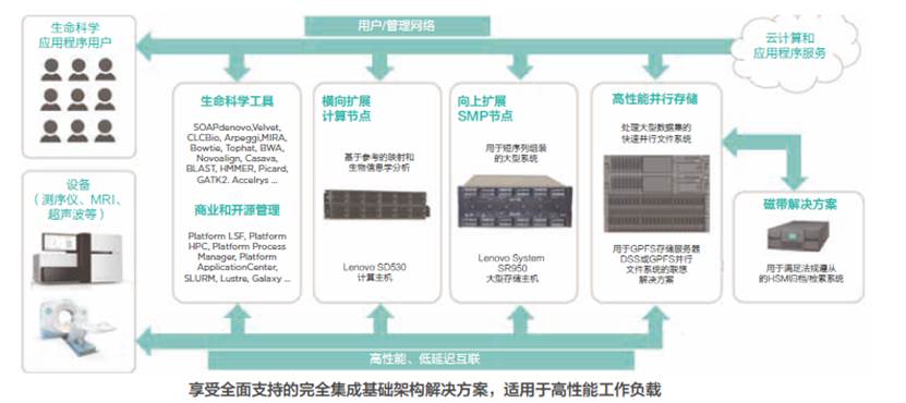 以联想高性能计算平台助力医院科研的“联想生命科学解决方案”为例:当下医院科研备受重视,承担着克服临床工作中疑难杂症的使命。生命科学解决方案发挥联想全球领先的高性能计算能力,使得每一个产品的设计都有不同的计算、存储以及业务运行类型的区分。联想可以根据不同的科研特性,进行完整解决方案的提供与服务。在某解放军医院,联想成功为医院完成了组学平台的设计以及规划,并使用了联想的计算与存储硬件、高性能计算管理平台,以及作业调度管理平台,助力院内科研工作。