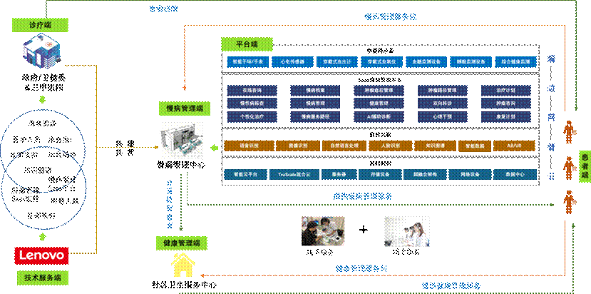 同时,基于新的模式与框架,联想结合区块链、物联网、人工智能等技术平台,提供一系列解决方案——包括医院和区域医疗两大行业场景解决方案群,以及技术平台和基础架构方案群。从基础架构到技术平台,再到行业场景应用的全方位建设,联想提供了“端到端”的解决方案,助力医院、卫生管理部门及各级政府实现以服务回馈居民,以技术守卫国民健康。