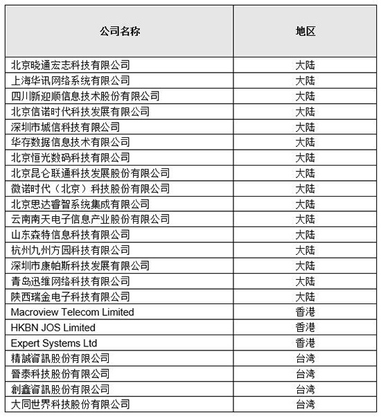 附录:VMware大中华区已获得大师级服务能力认证的合作伙伴名单