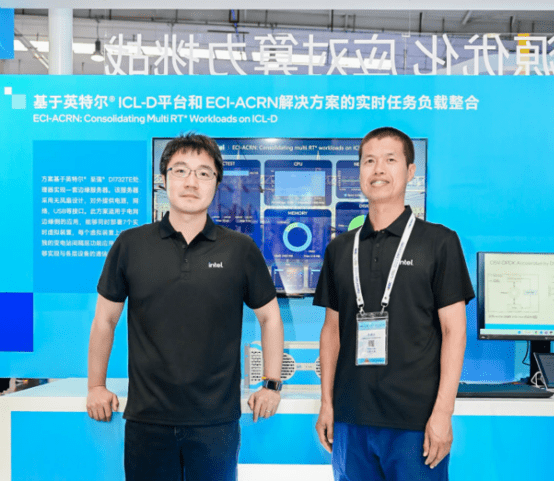在云与边缘的展台上,英特尔展示了软件定义工业的解决方案。该方案利用英特尔工业边缘控制软件 ECI、以及实时虚拟化方案 ACRN,在基于英特尔至强 1732TE 处理器的边缘服务器上,运行 7 个变电站关键实时装置,每个虚拟装置上运行单独的变电站间隔层功能应用,向下通过与过程层执行单元的交互完成数据采集、录波、保护等业务功能,向上提供信息至站控层,实现数字化的基础。该方案实现了整体二次设备尺寸 7:1 的缩减,并实现总体拥有成本高达 75% 的降低。