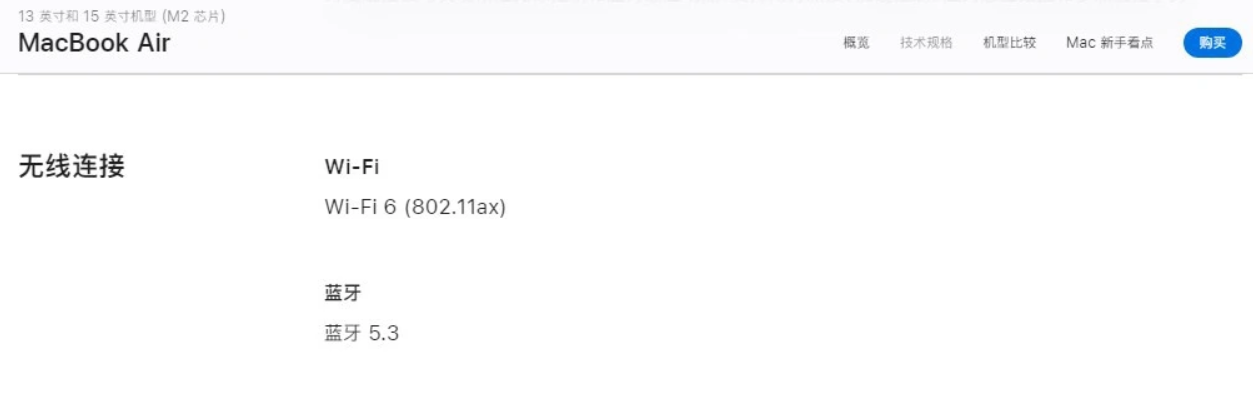 苹果在今年 WWDC 开发者大会上推出了 15 英寸的 MacBook Air,随后更新了技术规格页面,显示 13 英寸型号也支持蓝牙 5.3 标准。