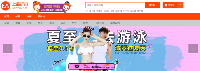 2009年5月,上品折扣网成功上线,单店购物系统正式推出,与实体连锁店同步推出应季新品、统一价格销售,旨在以更便捷的购物方式、更快速的配送服务,更广泛地面向全国消费者,让中国各个区域的时尚一族,同步得享高品质、高性价比的潮流商品。2010年4月,上品折扣网系统再次升级,多店购物系统上线,开创中国百货折扣店网络商场模式,真正实现了“零库存”、“虚实一体化”的电子商务模式。