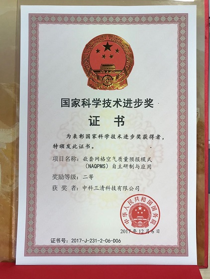 中科三清空气质量预报模式项目荣获2017年度国家科技进步二等奖