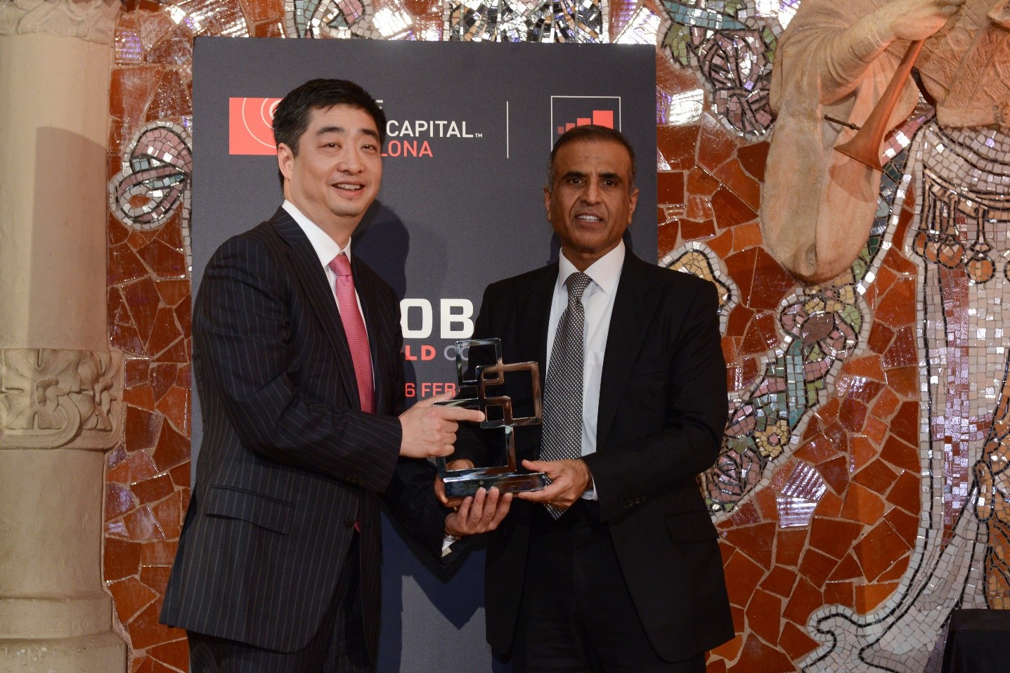 华为轮值CEO胡厚崑(左)和GSMA主席、印度Bharti公司创始人兼董事长Sunil Bharti Mittal(右)