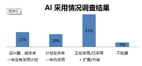 AI创新比比皆是,绝不仅仅局限于医疗行业。大约71%的公司表示,已经采用了AI或计划在未来一年内采用AI 。下图显示了来自全球各种机构的2,106位数据和分析技术决策者在市场调查中的回应。