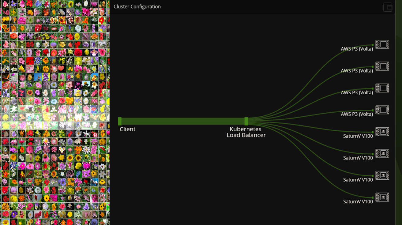 该图片显示了基于部署于混合型自有及公有云上的NVIDIA GPU的Kubernetes进行推理工作负载扩展情况