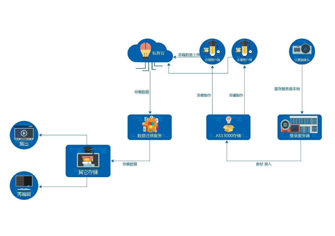 又如,非编需要海量共享空间。世界杯视频后期制作采用超高清(4K)进行搜录和非编,仅日均素材量就达到1000小时以上,需要数十个到上百个客户端协同工作,整个拍摄周期的存储容量达到PB级。如何提供跨平台的海量共享空间,让每个客户端都可以在线并发读取、修改视频素材,对存储方案是巨大考验。