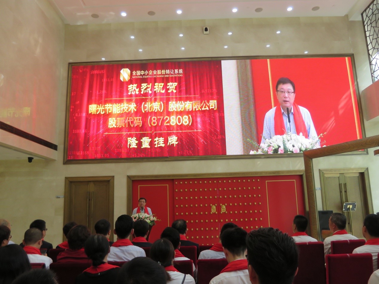8月3日,曙光节能技术(北京)股份有限公司(以下简称曙光节能 股票代码: 872808)新三板挂牌仪式在全国股转系统仪式大厅圆满举行。股东代表中科曙光总裁历军及高级管理团队、曙光节能董事长史新东、执行董事沈卫东、总经理何继盛出席了挂牌仪式。作为首家以液冷服务器和液冷数据中心解决方案为核心技术的自主创新高科技企业,曙光节能的挂牌,意味着液冷技术在数据中心的应用已获得广泛的用户认可,并开始得到资本市场的关注和青睐,在行业内具有里程碑式意义。