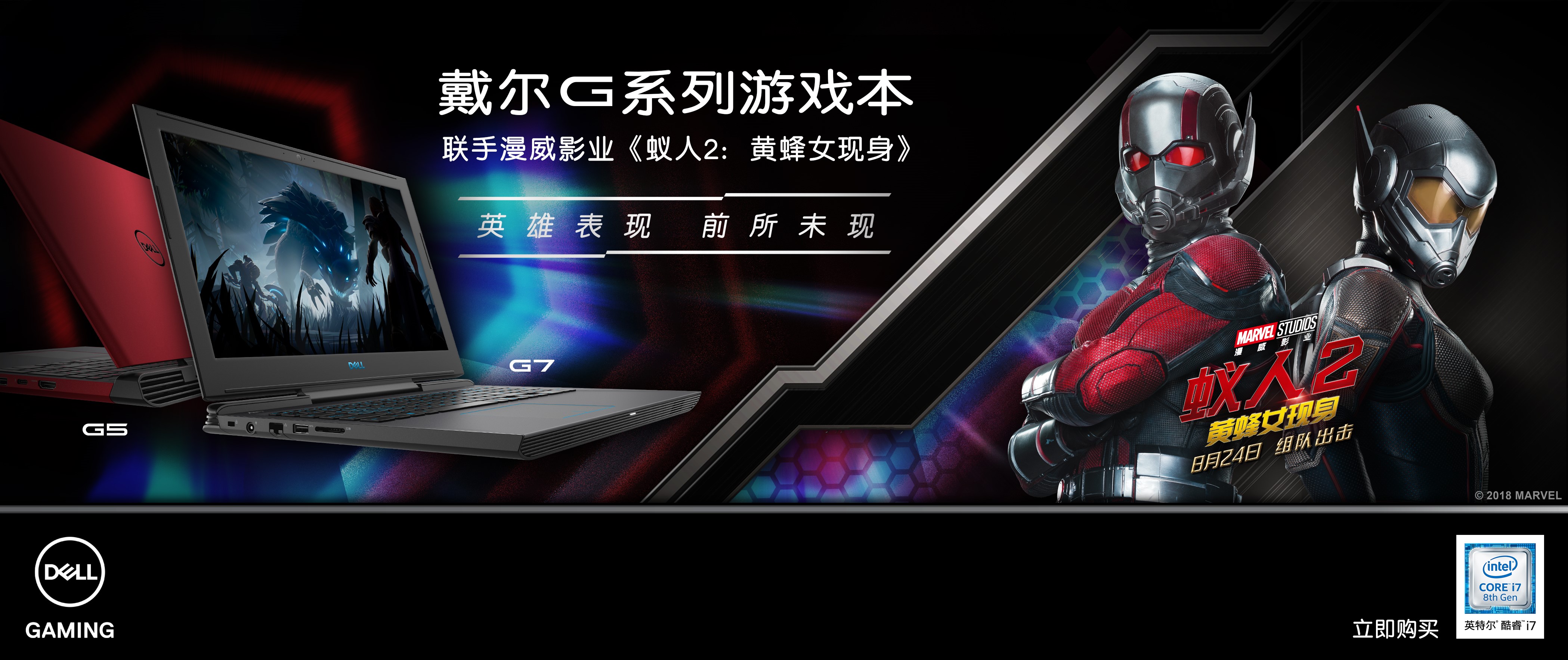 戴尔为漫威工作室推出的《蚁人2:黄蜂女现身》发起了一场全球广告营销活动。活动结合了戴尔新推出的 G5 系列游戏笔记本电脑,推出传统纸媒、网络和户外广告。漫威的粉丝们还可以在戴尔最新的电视广告中看到最新的 G5 游戏笔记本电脑以及蚁人与黄蜂女。
