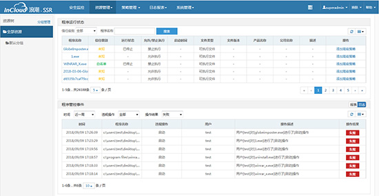 打开SSR集中管理平台中应用程序管控功能监控界面,从程序运行状态中可以发现GlobeImposter.exe的信任级别为未知,在正常运行模式下,如果应用程序管控功能识别到程序为未知或黑名单,SSR将直接阻止程序的执行,如果识别为白名单或灰名单,程序将可以执行。从程序管控事件中可以看出出,SSR应用程序管控功能阻止了GlobeImposter.exe样本的执行。