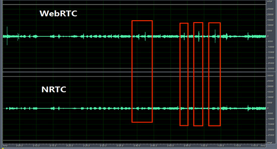 源生webrtc aec VS NRTC 在iphone6p 气音发音下的表现