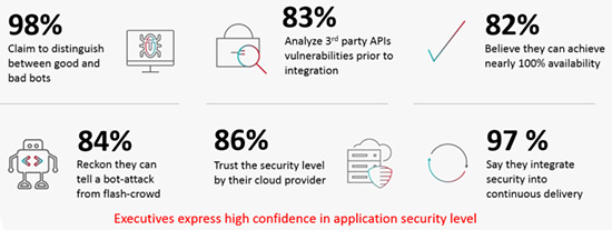 企业是否信心十足?是的。这是一种错误的安全感吗?是的。攻击在不断演变,安全措施也并非万无一失。拥有恰当的应用安全工具和流程可能会为企业提供一种掌控能力,但他们迟早会被破坏或绕过。企业面临的另一个问题是,高管们是否已经完全意识到了日常事件。这是理所当然的,他们希望内部团队负责应用安全并解决问题,但他们对企业应用安全策略的有效性和实际的暴露风险之间的感知似乎存在脱节。