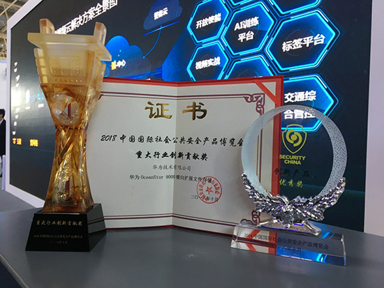 华为分布式云存储OceanStor 9000荣获2018安博会重大行业创新贡献奖