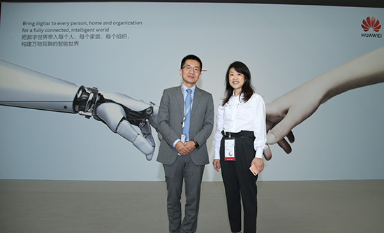 华为路由器与电信以太产品线总裁高戟(左), 湖南广播电视台科技管理部主任李萍(右)