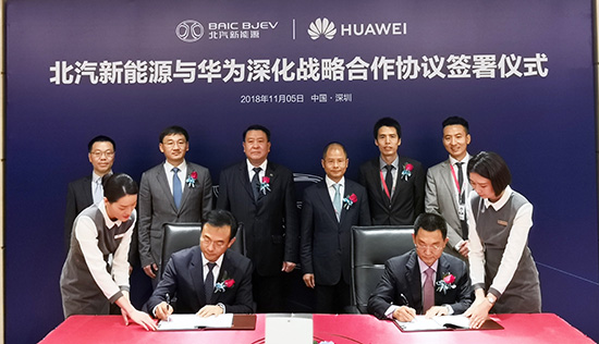 此前,2017年9月27日,北汽新能源与华为签署了战略合作协议,双方在技术研发,产品创新等方面开展全面合作,合作范围包括云计算、车联网、能源互联网等领域。