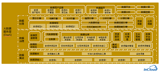 大数据产业的迅速发展,使得各行各业的企事业单位的业务产生大量数据。传统的云平台通常采用IaaS-PaaS-SaaS(亦即基础设施即服务-平台即服务-应用即服务)三层解耦方式部署,不同层、不同应用、不同租户的数据的整个生命周期都是孤立的,这种方式在一定程度上存在与业务关联性不足、数据管理混乱、无法做到数据共享及隔离等问题,随着平台的扩展,数据会呈现指数级上升,而运维、运营难度亦陡然增加,企业云与大数据融合和治理迫在眉睫。