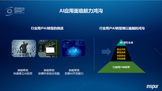 目前,一些技术能力较强、产业影响力大的企业,发挥自己的平台作用,把ISV、AI应用开发商整合起来,合作共赢,为客户提供整体方案,解决了这个问题。如百度提出ABC三位一体战略,全力推进新兴技术与各行业的深度融合,成为应用最广泛的AI供应商;浪潮一直致力于构建深入行业的生态系统,强化产品创新能力,针对客户和关键场景进行定制化联合创新开发AI计算软硬件,提供端到端AI系统方案及开发工具赋能行业应用。