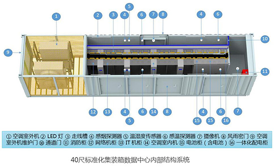 浪潮一体化集装箱式数据中心采用模块化设计、行间级制冷、冷热隔离等技术。在机房建设方面,该集装箱式数据中心将集成UPS电源系统、供配电模块、制冷系统、动力环境监控等基础设施融为一体,组建模式灵活多变,能够有效缩短机房建设周期。另外,机房选址及运输方面,该机房选址灵活,不受现场环境限制,只需要网络、电源、水管等管线即可完成部署,且运输方便简单,运输方式专业成熟。在机房空间利用方面,数据集装箱式机房内部空间利用率高,单个箱体可放置多个IT机柜,供电与制冷模块均实现N+1冗余,稳定可靠,且冷却空间小,便于冷热隔离,具有较高的制冷效率,真正绿色节能。