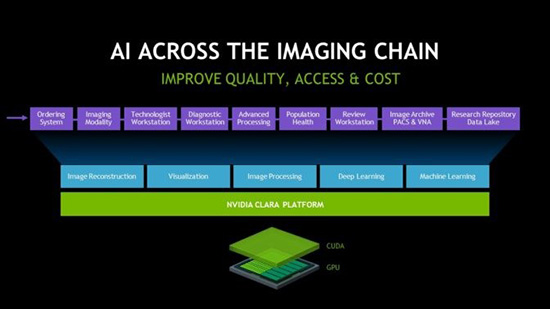 智能仪器和自动化工作流程已成为现实。NVIDIA 正在与行业思想领袖开展合作,让放射学能通过 NVIDIA Clara 平台跨越 AI 鸿沟。