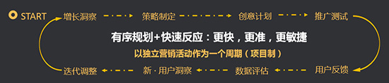 对于网易云信和网易七鱼来说,采取项目制的营销策略,以独立的营销活动作为一个周期,从增长洞察开始,依次以策略制定、创意计划、推广测试、用户反馈、数据评估为营销条线,并且在营销过程中对客户进行再次评估,形成新的客户洞察,以衡量之前的评估及洞察是否准确,从而进行迭代调整。整个营销活动做到有序规划和快速反应,形成了一个更快、更准、更敏捷的正向闭环。