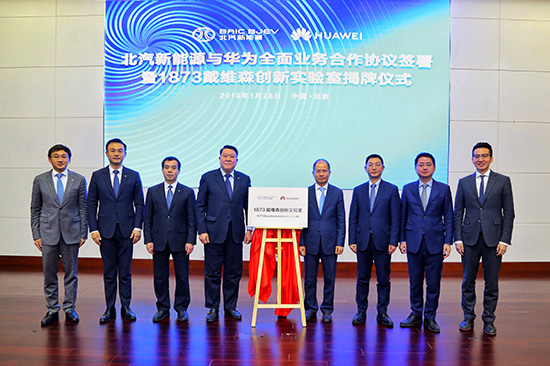 昨日,华为与北汽蓝谷子公司北汽新能源签署全面业务合作协议,联合设立“1873戴维森创新实验室,共同开发面向下一代的智能网联电动汽车技术。当日,该实验室在北汽集团总部正式揭牌。