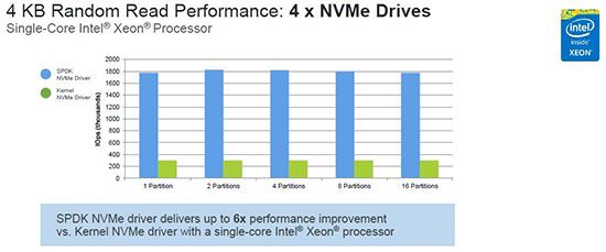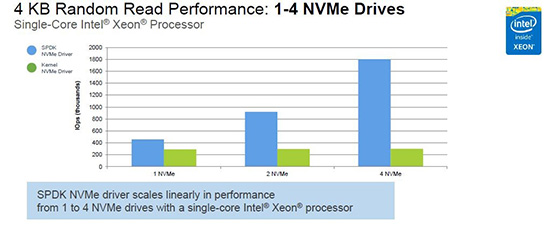 先来看一组来自Intel的性能测试数据:用户态NVMe 驱动 VS 内核态NVMe驱动