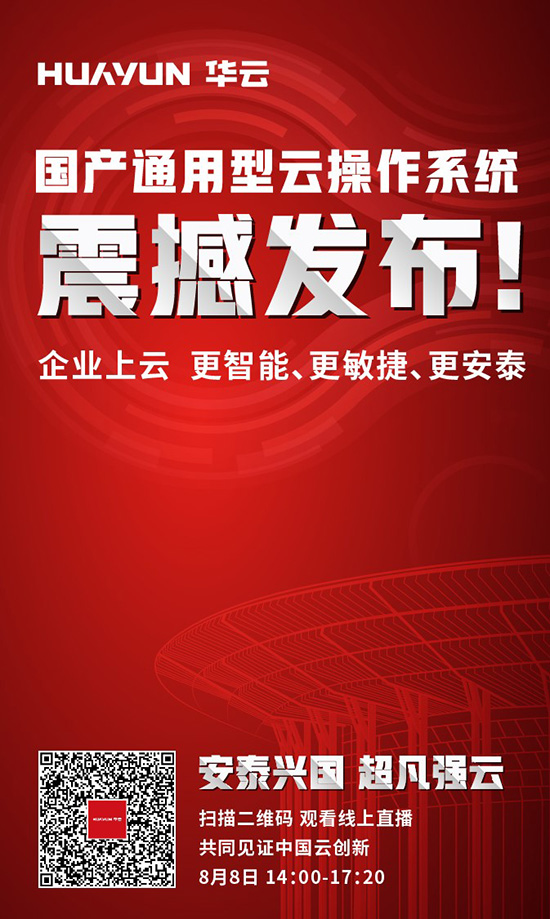 该国产通用型云操作系统是华云数据即将在8月8日正式对外推出的一款具有应用创新特性产品,拥有全栈、自主、安全、创新以及无厂商锁定的特性,依托国内雄厚的资源和全球领先技术,开创国内企业敏捷上云之技术先河,并率先支持国内外众多品牌服务器,全面适配国产芯片、操作系统和中间件,加速产品技术提升以及产业生态健康发展,助力国产品牌快速崛起。能够让政府和企业客户通过简单便捷的操作实现云部署和数字化转型。它将颠覆传统上云体验,让上云更智能、更敏捷、更安泰!”