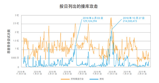 爬虫攻击主要指植入在主机和终端内的恶意的程序和代码被CC端等控制端控制成为攻击工具,犹如深藏海底的暗礁,对目标发起的一系列具有隐蔽性的攻击。“撞库攻击”正是一种典型的利用爬虫发起的攻击方式。Akamai最新发布的《2019年互联网安全状况报告:Web攻击和游戏撞库》显示,在2017年11月至2019年3月期间,黑客针对游戏网站进行了120亿次撞库攻击,这一数字也在不断上升(见图三)。