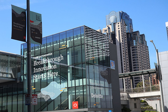 另外,路旗和建筑外墙上随处可见今年大会的主题标语——“Breakthrough Starts Here(突破从这里开始)”。从近几年不断更迭的大会主题,我们也能窥见几分甲骨文发展理念的转变。