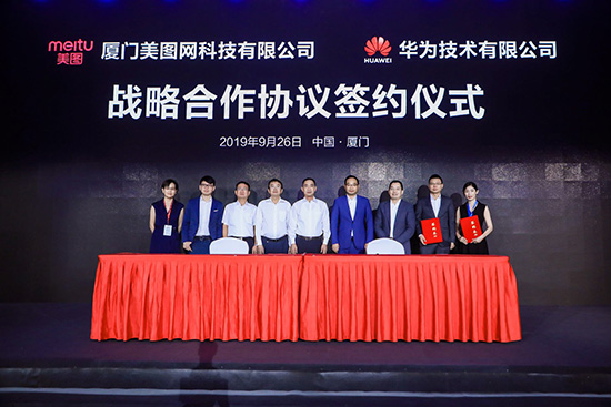 9月26日,在厦门·选择不凡·华为云城市峰会2019上,华为与美图公司签订战略合作协议。双方将在未来5年,携手深耕互联网创新应用、面向行业的解决方案以及国际化业务。
