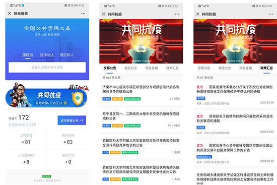 全国公共资源交易平台微信号推出“共同抗疫”专题服务