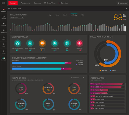 是德科技的Threat Simulator解决方案为企业安全运营团队提供了一个测试安全工具的方法,从而确定其在保护组织方面的有效性。该解决方案会对端到端生产网络安全基础设施进行连续不断的自动安全评估,以便于各组织快速发现安全配置中的漏洞和环境变化,这些通常是由于IT或相关小组中的某人无意识地做出变更而导致的,本款专利型推荐引擎将会提供明确的补救措施。